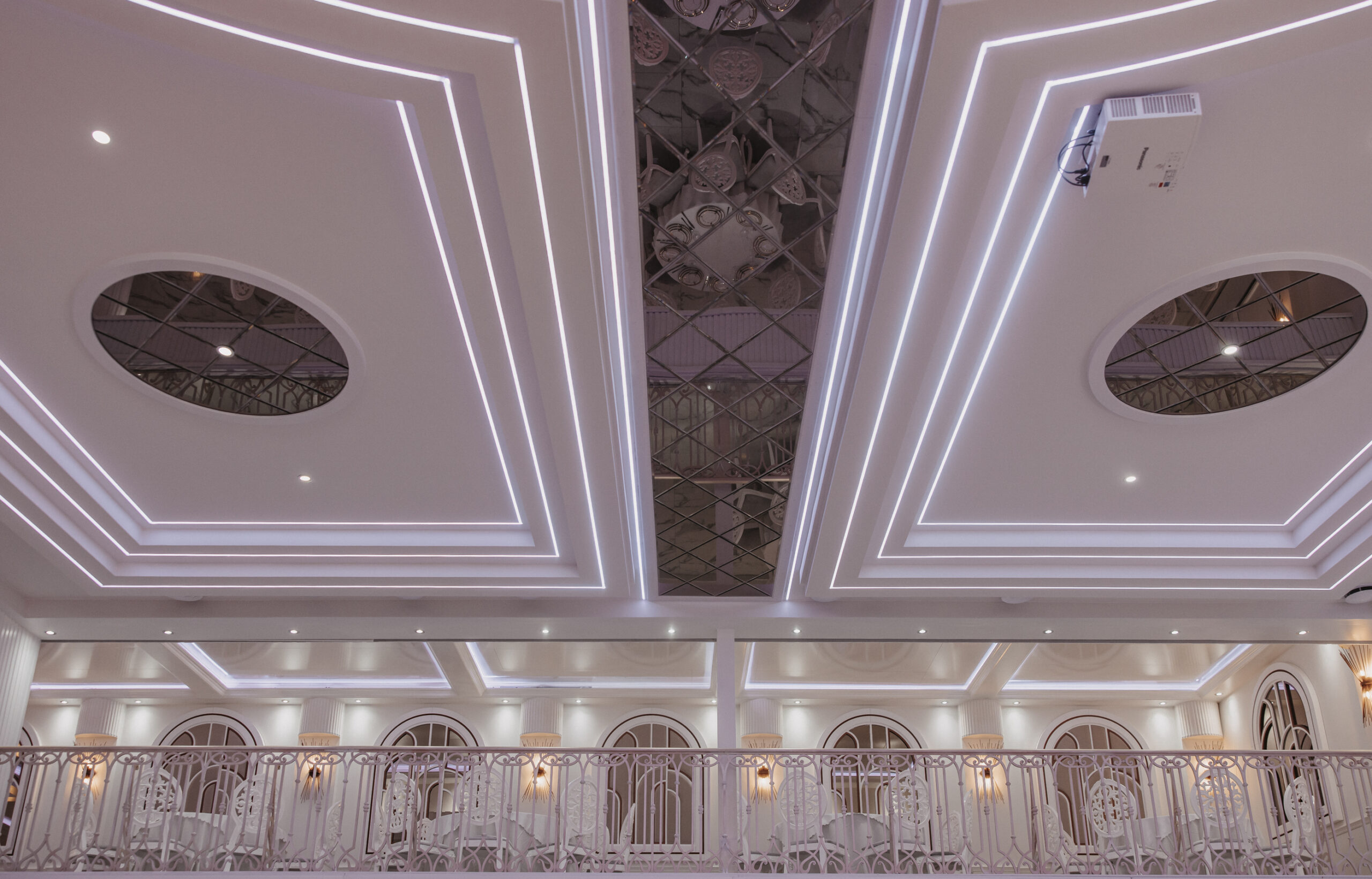 Een erg mooie grote zaal! Leuk interieur van binnen, net zo’n ballroom als van assepoester. Ook hangt er een schitterende kroonluchter!